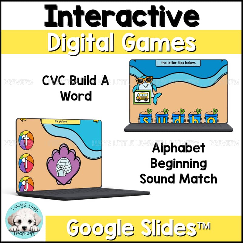 Two interactive digital games are also included! Students will identify beginning sounds and build CVC words using Google Slides™.
